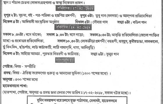 Conducting of two days annual fair namely “KHOLAMELA” (open fair), in which each and every one of our surrounding areas is welcome to participate with their ideas and performances. The fair is running on its fourth year since 2015. The fair is conducted jointly with the mother organisation, ‘BIGYAN O SAMAJ’ (science & society).